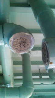 尿石を取り除き排水管を設置して排水がスムーズに流れることを確認して作業完了です。