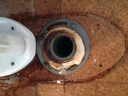 店舗様からのご依頼で、トイレ便器の淵が知らない間に濡れているとの事でした。到着して原因が何なのか点検したところ、一番怪しい箇所は便器と床の脱着面でした。簡単に説明すると、床に固定されている防水部品が劣化して隙間が出来きます、その隙間から水漏れが起こります。画像の白い部分が防水パッキンです。この部品は取替え可能なので大事には至りません。ただし、便器を脱着しないと交換出来ない部品なので、別途便器脱着費用が発生します。放って置くと床が痛んでしまいますので、早めの取替えをお勧めします。これに限らず、当社では水漏れ点検が無料なのでお気軽にご相談下さい。